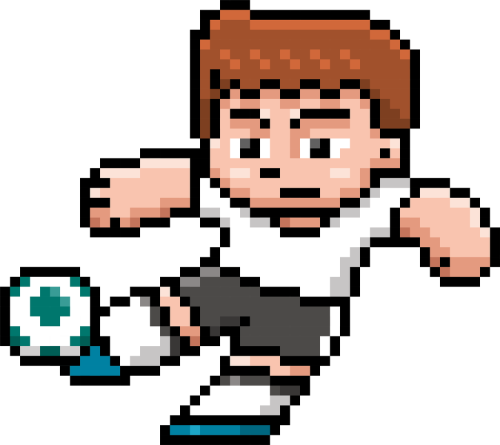 Grafika przedstawia strzelającego do bramki piłkarza. Styl inspirowany grą Minecraft i wieloma innymi nawiązującymi do dawnych lat. Grafika w stylu retro Pixel Art. Idealny prezent na każdą okazje lub aby sprawić sobie nostalgiczny, śmieszny, oryginalny upominek ;)
