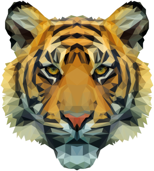 Oryginalna grafika przedstawiająca tygrysa składającego się z setek trójkątów, tworzących niezwykły efekt origami.