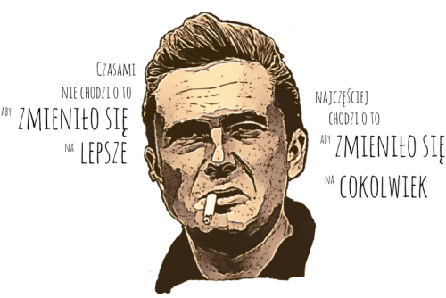 Poduszka z cytatem znanego i lubianego Marka Hłaski: "Czasami nie chodzi o to aby zmieniło się na lepsze. Najczęściej chodzi o to aby zmieniło się na cokolwiek". Się poleca człowiekowi do spania.