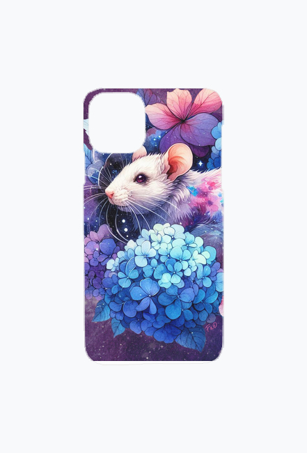 Ożyw swoje otoczenie z uroczym, białym szczurkiem, który zasiada wśród kwitnących hortensji w odcieniach fioletu, błękitu i różu. Ten wyjątkowy wzór to nie tylko estetyczna dekoracja, ale również wyraz harmonii i delikatności.