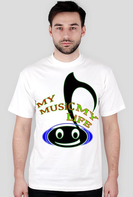 Model ma na sobie koszulkę w rozmiarze M. Maksymalne wymiary nadruku to 30cm (szerokość)