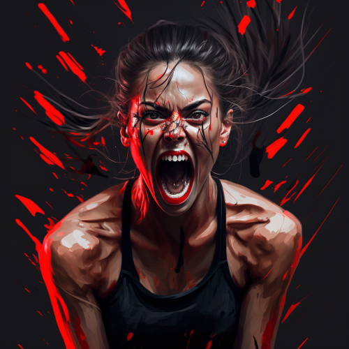 Odkryj moc wyrazistego designu z czarnym t-shirtem, na którym znajduje się wzór przedstawiający krzyczącą kobietę. Otoczona jest ona intensywną czerwienią, symbolizującą potężną energię, która z niej tryska podczas chęci wykrzyczenia się. Ten wyjątkowy i odważny t-shirt dodaje charakteru i oryginalności każdemu strojowi, sprawiając, że z pewnością się wyróżnisz w tłumie. Idealny dla osób ceniących sobie niebanalne wzory i mocne emocje.