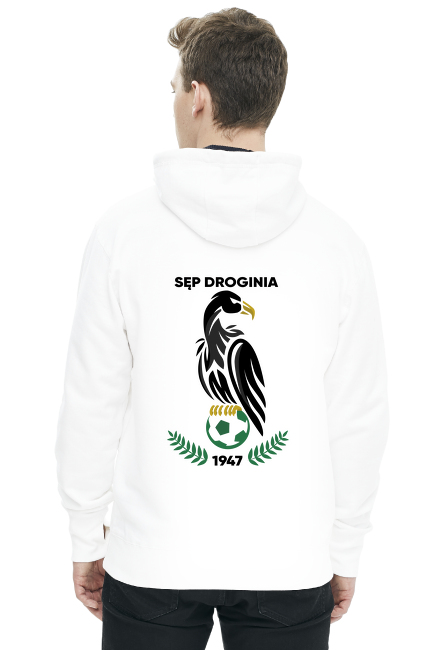 Bluza męska z kapturem biała z oryginalnym logiem Sępa Droginii