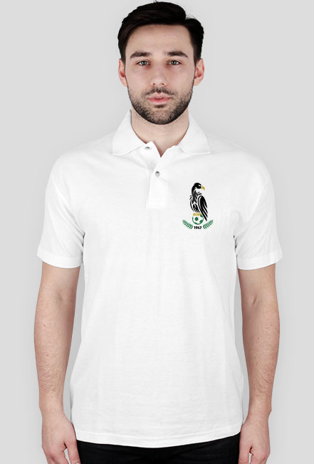 Biała koszulka polo z oryginalnym logiem Sępa Droginii