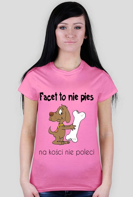 T-shirt (koszulka) klasyczny-damski z napisem "Facet to nie pies, na kości nie poleci".