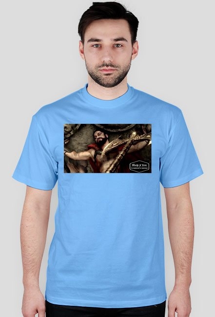 Model ma na sobie koszulkę w rozmiarze M. Maksymalne wymiary nadruku to 30cm (szerokość)