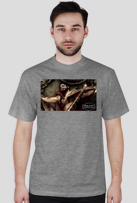 Model ma na sobie koszulkę w rozmiarze M. Maksymalne wymiary nadruku to 30cm (szerokość)