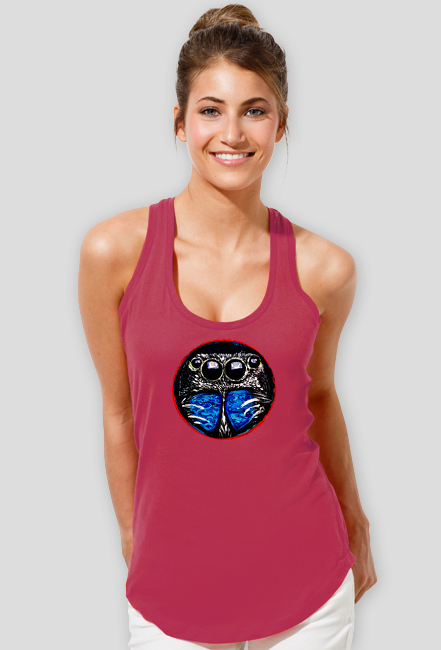 Damska koszulka na ramiączka ze skakunem. Obraz namalowany ręcznie przez Sonia Wycisk.