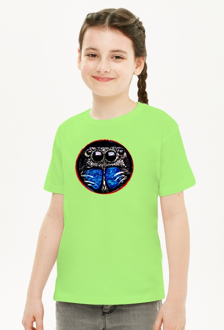 Koszulka dla dziewczynki ze skakunem. Obraz namalowany przez Sonia Wycisk.