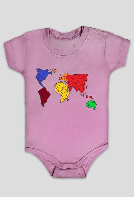Niezwykła body dziecięce z unikatowym wzorem geometrycznym kontynentów świata. Zamów już dziś w dowolnym wariancie kolorystycznym!