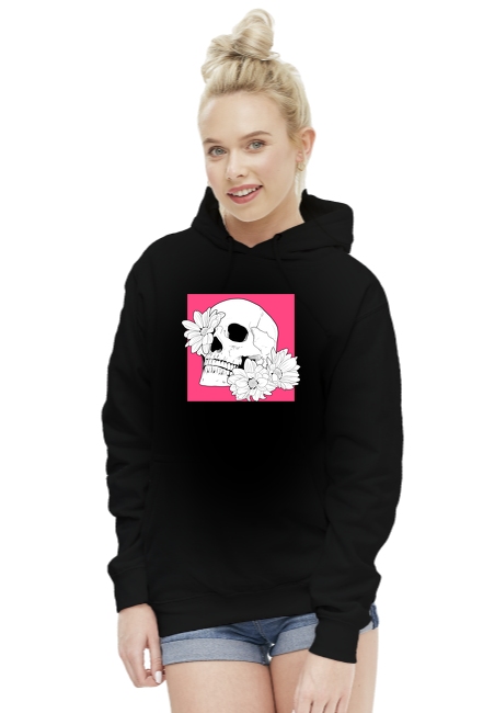 SkullGirl – Czaszka i trzy kwiaty SKU: bluz-z-kapturem-damska_c72ko7h8_4431260
