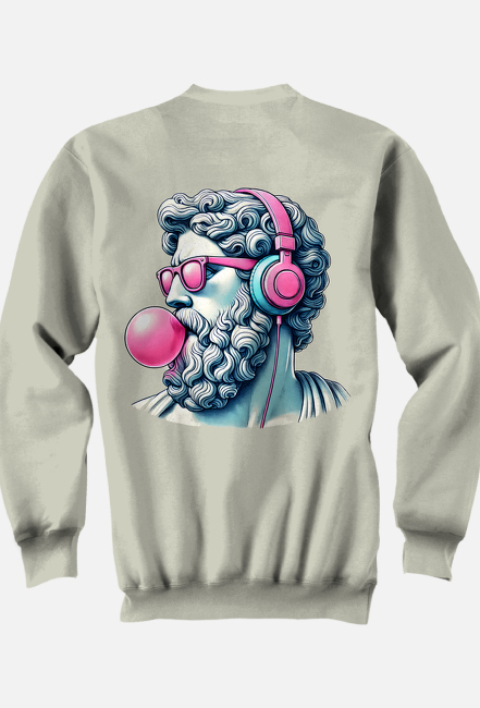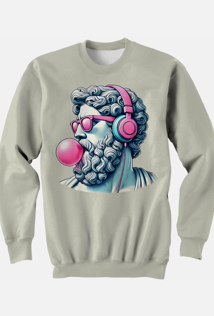 Antyczny Chillout: Posąg z Gumą Balonową i Słuchawkami - Bluza Męska FullPrint SKU: fullprint-bluza-bezkaptura_qdbpoogx_4776324