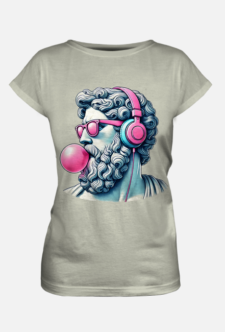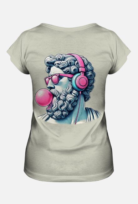 Antyczny Chillout: Posąg z Gumą Balonową i Słuchawkami - Koszulka Damska FullPrint SKU: fullprint-damski-nowy_oibqo6kk_4776323