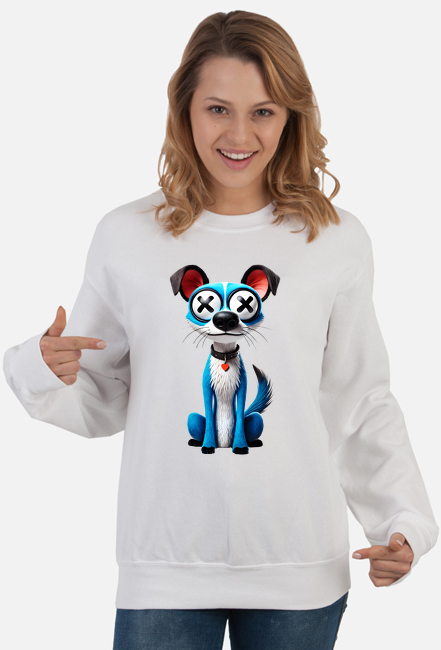 Bluza Damska Klasyczna z Niebieskim Psem Wirtualnych Światów z Oczami X SKU: bluza-damska-B04_ki1gj6zg_4779126