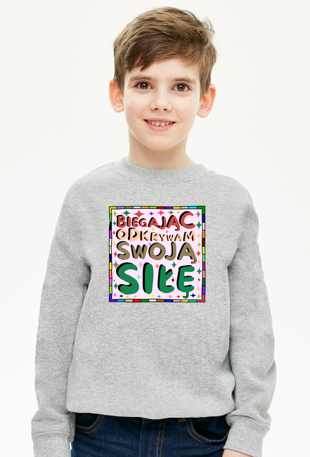 Bluza Dla Chłopców - Inspirujący cytat o odkrywaniu swojej siły poprzez bieganie - kolorowa grafika motywacyjna SKU: ch-opi-ca-bluza-bez-kaptura_siytxkw6_4777785
