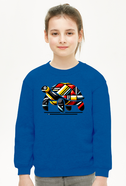 Bluza Dla Dziewczynki - Geometryczny żółw w kalejdoskopie barw - unikalna grafika nowoczesna SKU: dziewcz-ca-bluza-bez-kaptura_q97fb7pi_4780217