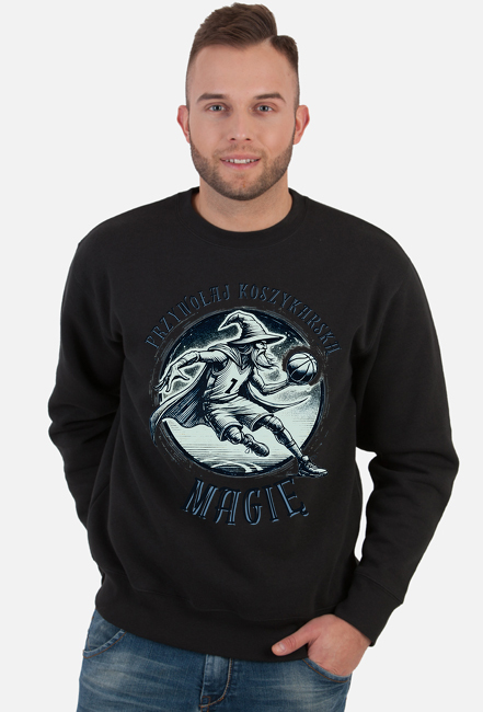 Bluza Męska Klasyczna - Przywołaj koszykarską magię - grafika z czarodziejem grającym w koszykówkę SKU: bluza-m-ska-B01_6p21r3o2_4779275