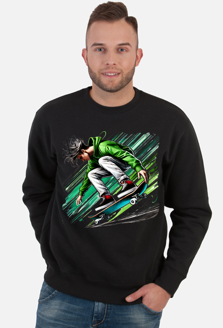 Bluza Męska Klasyczna Stylowy Chłopak w Zielonej Bluzie na Deskorolce – Dynamiczna Ilustracja SKU: bluza-m-ska-B01_jrrel6tr_4777627
