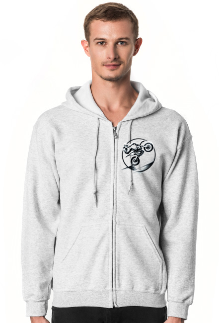 Bluza Męska Rozpinana z Kapturem z dynamiczną grafiką stunt motocross to doskonały wybór dla każdego miłośnika adrenaliny i ekstremalnych akrobacji. Ta unikalna grafika przedstawia motocyklistę wykonującego spektakularne triki na motocyklu terenowym. W monochromatycznym stylu, design ten podkreśla dynamikę i ekscytację związaną z popisami motocross.