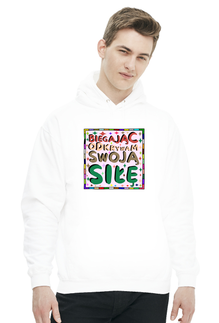 Bluza Męska z Kapturem - Inspirujący cytat o odkrywaniu swojej siły poprzez bieganie - kolorowa grafika motywacyjna SKU: Bluza-z-kapturem_sk9pj3br_4777758