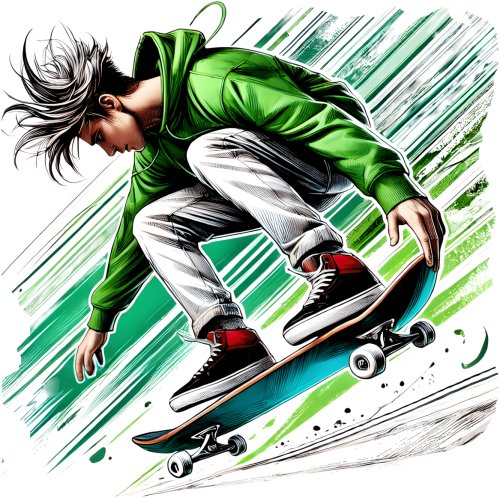 Odkryj moją bluzę męską z kapturem z dynamiczną ilustracją, przedstawiającą stylowego chłopaka w zielonej bluzie na deskorolce. Ta nowoczesna grafika jest pełna energii i ruchu, co sprawia, że bluza wyróżnia się wśród innych. Każdy projekt jest ręcznie tworzony, co zapewnia jego unikalny design i wyjątkowy charakter.