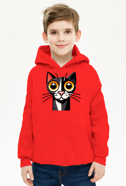 Bluza z Kapturem Dla Chłopca - Kocia magia - czarno-biały kot z hipnotyzującymi oczami na bluzie z kapturem dla chłopca to wyjątkowy produkt, który z pewnością przypadnie do gustu miłośnikom kotów i zwierząt. Grafika przedstawiająca czarno-białego kota z dużymi, hipnotyzującymi oczami, jest prawdziwym dziełem sztuki cyfrowej. Ta kocia ilustracja jest nie tylko abstrakcyjna, ale również urocza i przyciągająca uwagę.