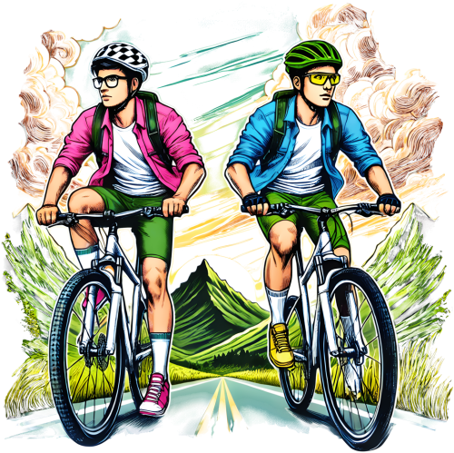 Bluza z Kapturem Dla Chłopców - Dwaj Młodzi Kolarze Jadący Przez Górzysty Krajobraz o Świcie SKU: ch-opi-ca-bluza-z-kapturem_349f6vqq_4778400