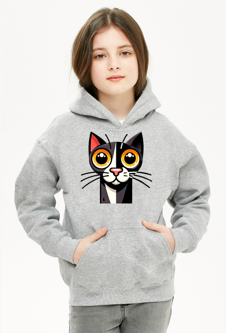 Bluza z Kapturem Dla Dziewczynki - Kocia magia - czarno-biały kot z hipnotyzującymi oczami SKU: dziewcz-ca-bluza-z-kapturem_5u950obp_4779686