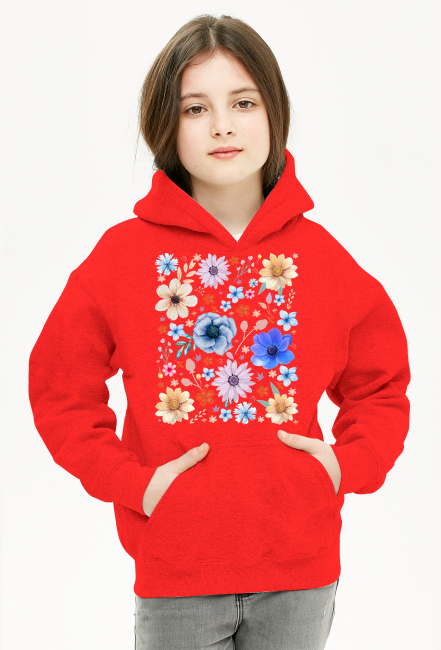 Bluza z kapturem dla dziewczynki "Rozkwitające Marzenia - Abstrakcyjna Kompozycja Kwiatów" SKU: dziewcz-ca-bluza-z-kapturem_8m1abf48_4780743