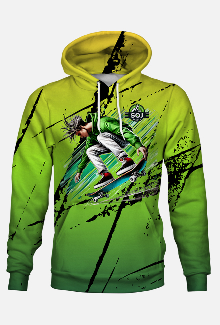 Bluza z Kapturem FullPrint Stylowy Chłopak w Zielonej Bluzie na Deskorolce – Dynamiczna Ilustracja SKU: fullprint-bluza-nowa_k7ki4h48_4777678