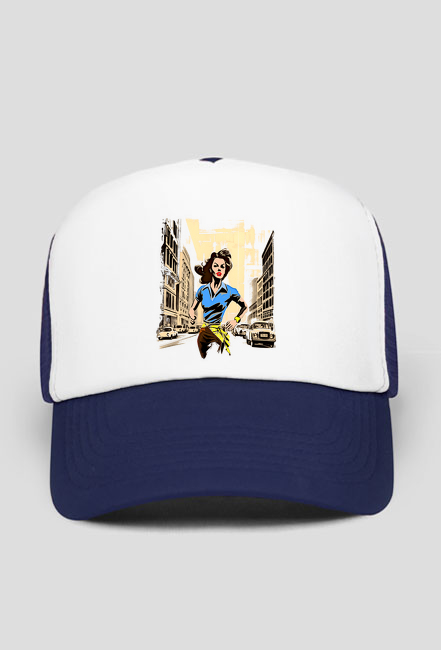 Czapka z Daszkiem typu TRUCKER - Bieg przez miasto w stylu retro: Energia i Determinacja w ulicznym chaosie SKU: czapka-z-daszkiem-trucker_g7itqh33_4778466