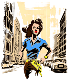 Czapka ta nie tylko dodaje stylu do Twojej garderoby, ale także chroni przed słońcem podczas biegania czy innych aktywności na świeżym powietrzu. Grafika przedstawiająca kobietę biegnącą przez miasto, uchwycona w stylu vintage, inspiruje do działania i podkreśla determinację.