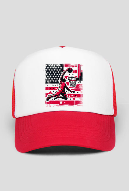 Czapka z daszkiem typu trucker z motywem koszykówki i patriotyzmu: Amerykański sport w sztuce ulicznej na stylowej czapce SKU: czapka-z-daszkiem-trucker_bk8o1of7_4775743