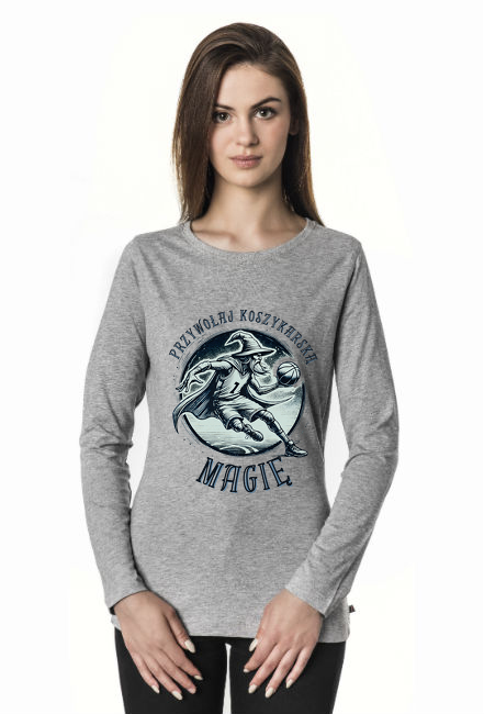 Damska Koszulka z Długim Rękawem - Przywołaj koszykarską magię - grafika z czarodziejem grającym w koszykówkę SKU: premium-longsleeve-ladies-voyage_dutvdg8w_4779317