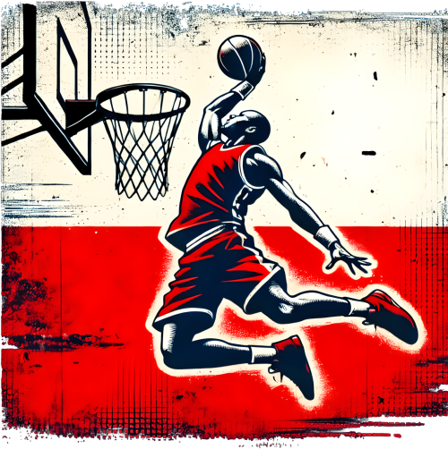 Odkryj moją bluzę damską z dynamiczną grafiką polskiego koszykarza wykonującego wsad na tle flagi Polski w stylu graffiti. Ta klasyczna bluza łączy sportowy styl z unikalnym designem pop-art, który z pewnością przyciągnie uwagę. Grafika przedstawia koszykarza w trakcie imponującego wsadu, co oddaje energię i dynamikę sportu, podczas gdy tło z flagą Polski w stylu graffiti dodaje całości patriotycznego charakteru, podkreślając polską dumę.