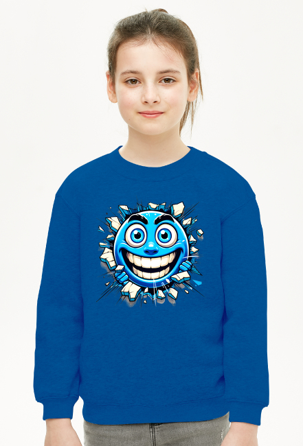 Ekstrawagancka niebieska twarz przełamująca mur w komiksowym stylu - Bluza Dla Dziewczynek SKU: dziewcz-ca-bluza-bez-kaptura_r2e4482a_4777108