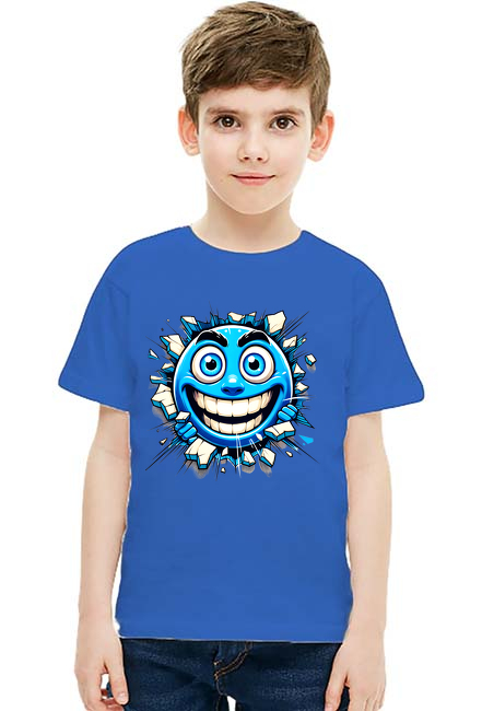 Ekstrawagancka niebieska twarz przełamująca mur w komiksowym stylu - Koszulka Dla Chłopców SKU: koszulka-chlopiec-new_2g8g09n0_4777102