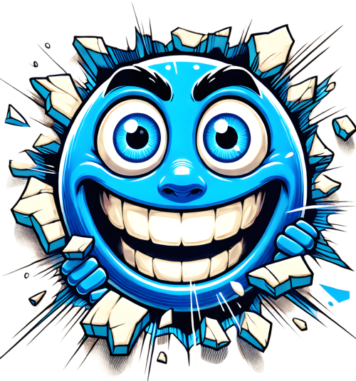 Ekstrawagancka niebieska twarz przełamująca mur w komiksowym stylu - Koszulka Dla Dziewczynek SKU: koszulka-dziewczynka-new_9lcxqphh_4777114