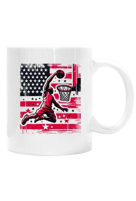 Klasyczny biały kubek z motywem koszykówki i patriotyzmu: Amerykański sport w sztuce ulicznej na porcelanowym kubku SKU: kubek_foarn7c1_4775738
