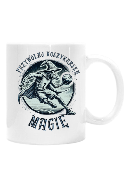KLASYCZNY KUBEK - Przywołaj koszykarską magię - grafika z czarodziejem grającym w koszykówkę SKU: kubek_scmdy2ci_4779278