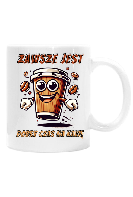 Grafika jest wysokiej rozdzielczości, co gwarantuje jej doskonałą jakość na kubku. Wesoła filiżanka z dynamicznym hasłem "Zawsze jest dobry czas na kawę" to idealny sposób, aby wyrazić swoją miłość do kawy. To nie tylko kubek, ale także sposób na przekazanie swojego stylu i osobowości.
