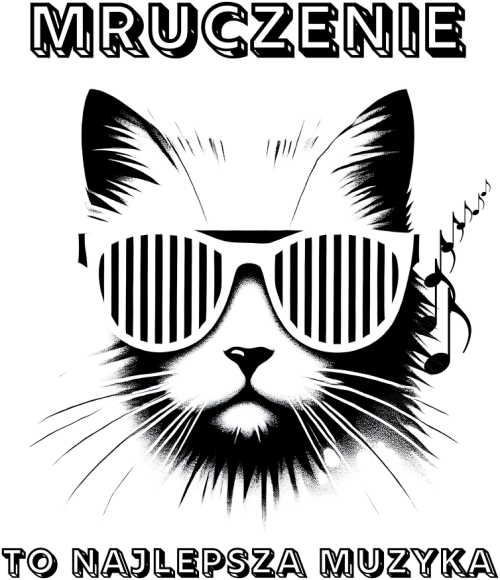 Koszulka Damska ECO - Symfonia kociego mruczenia - medytacja dla kociarzy to wyjątkowa koszulka, która łączy w sobie miłość do kotów i sztukę relaksu. Grafika przedstawia czarnego kota w kocich okularach, otoczonego nutami, którego mruczenie kojarzy się z relaksem z kotem. Jest to idealna propozycja dla wszystkich kociarzy, którzy cenią sobie przyjaciela kota i wyjątkowe grafiki.