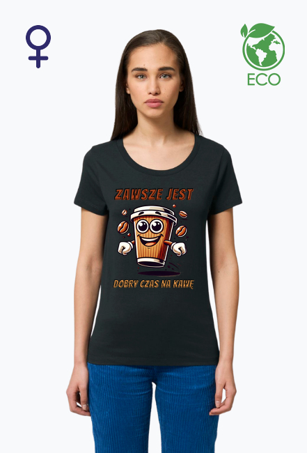 Koszulka Damska ECO: Zabawna filiżanka kawy z dynamicznym hasłem - idealna dla miłośników kawy SKU: eco-koszulka-damska-Eco-koszulka-damska_n16omtih_4782478