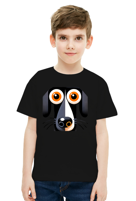 Koszulka Dla Chłopca - Czarno-Szary Pies Ilustracja z Dużymi Pomarańczowymi Oczami - Unikalna Grafika Dla Miłośników Zwierząt SKU: koszulka-chlopiec-new_1biefzf0_4779372