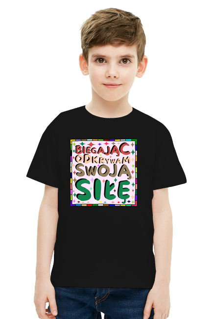 Koszulka Dla Chłopców - Inspirujący cytat o odkrywaniu swojej siły poprzez bieganie - kolorowa grafika motywacyjna SKU: koszulka-chlopiec-new_88hzi74o_4777695