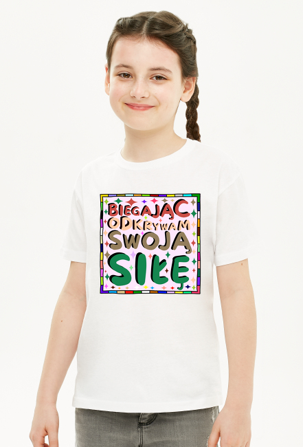 Koszulka Dla Dziewczynek - Inspirujący cytat o odkrywaniu swojej siły poprzez bieganie - kolorowa grafika motywacyjna SKU: koszulka-dziewczynka-new_bihddm9s_4777701
