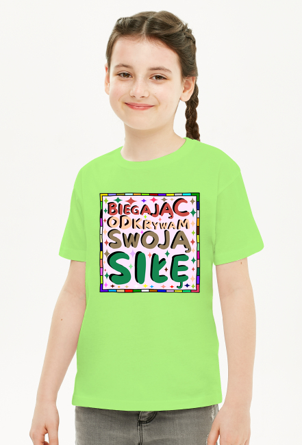 Koszulka Dla Dziewczynek - Inspirujący cytat o odkrywaniu swojej siły poprzez bieganie - kolorowa grafika motywacyjna SKU: koszulka-dziewczynka-new_bihddm9s_4777701