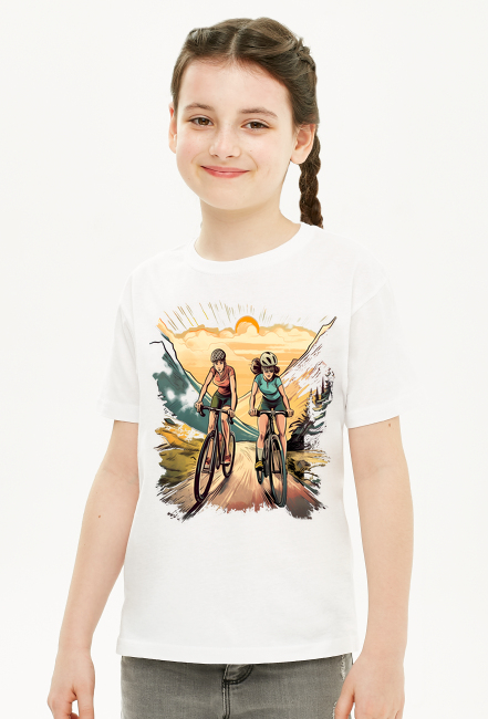 Koszulka Dla Dziewczynek "Rowerowe uniesienia w królestwie gór – Wyjątkowa przygoda na ścieżkach przy zachodzie słońca SKU: koszulka-dziewczynka-new_tn5allmj_4778212