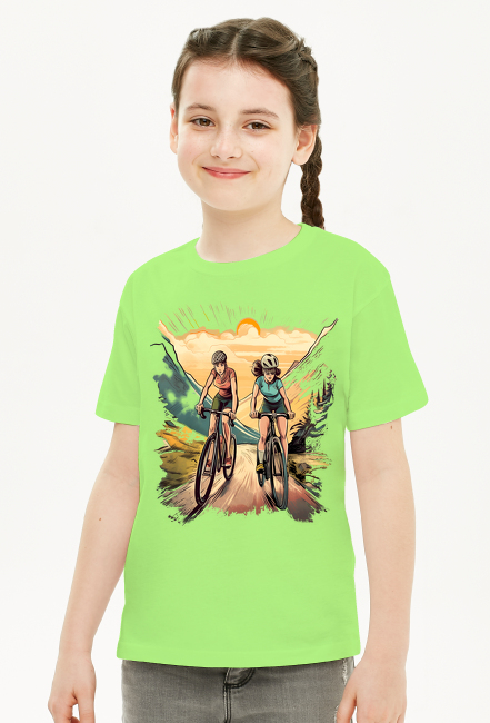 Koszulka Dla Dziewczynek "Rowerowe uniesienia w królestwie gór – Wyjątkowa przygoda na ścieżkach przy zachodzie słońca SKU: koszulka-dziewczynka-new_tn5allmj_4778212