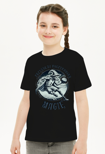 Koszulka Dla Dziewczynki - Przywołaj koszykarską magię - grafika z czarodziejem grającym w koszykówkę SKU: koszulka-dziewczynka-new_7x1z5cpy_4779258